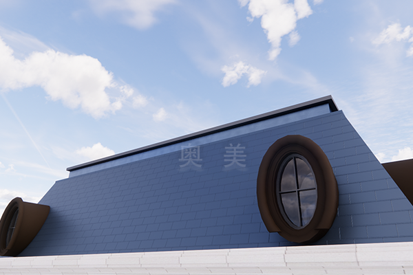 該項目位于歐洲,屋面全部采用奧美純進口彩石金屬瓦Romana鋪裝。 圖片聲明...